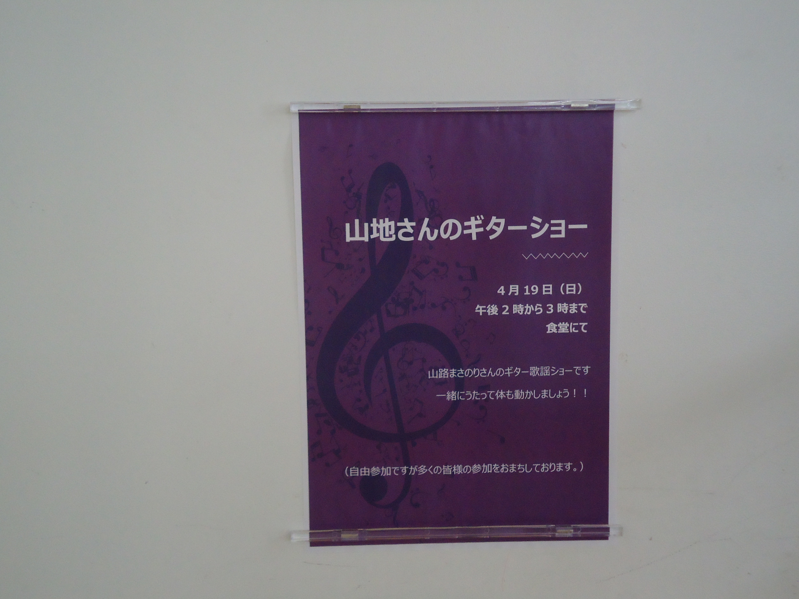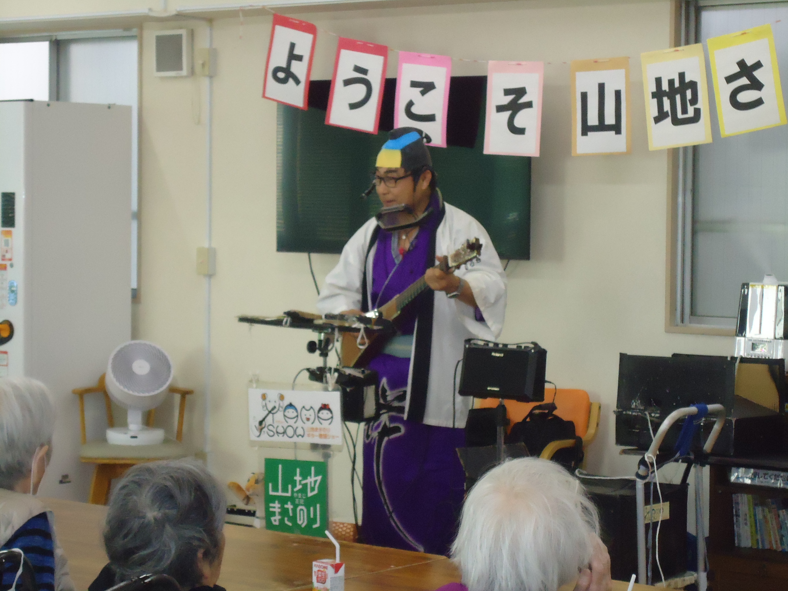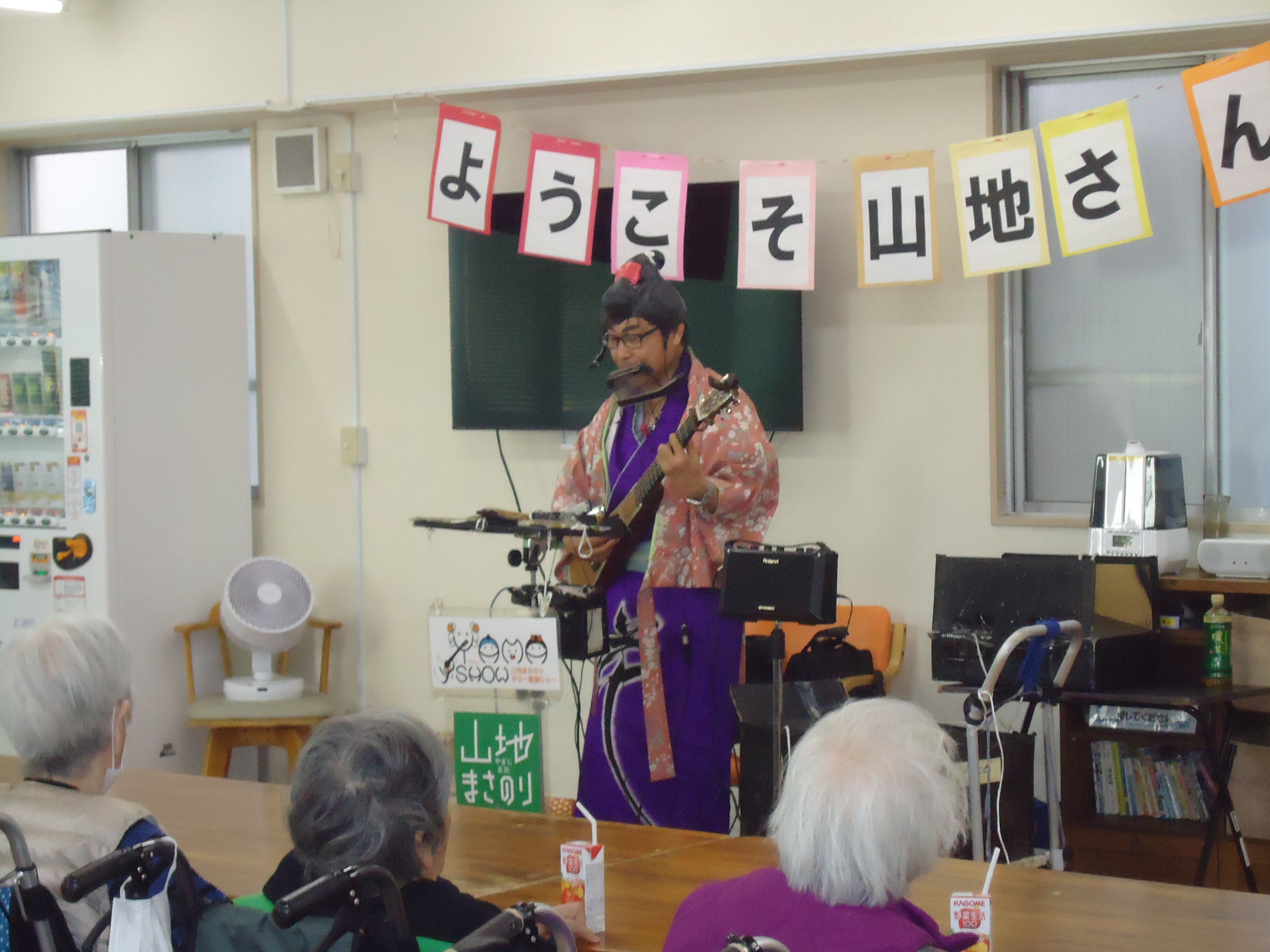 今年2回目 山地さんギターショー 2026/4/19 新緑まぶしい季節となりました。 今年2回目となる山地さんのギターショー!なんだかパワーアップしています。 何がパワーアップしているでしょうか? そう、和装・三味線・戦国武将です。トークも炸裂でした。 今回も歌い、体を動かし、笑い、と楽しいひと時を過ごしました。 4月お誕生日の方のお祝いもしていただきました♪ またお越しください!