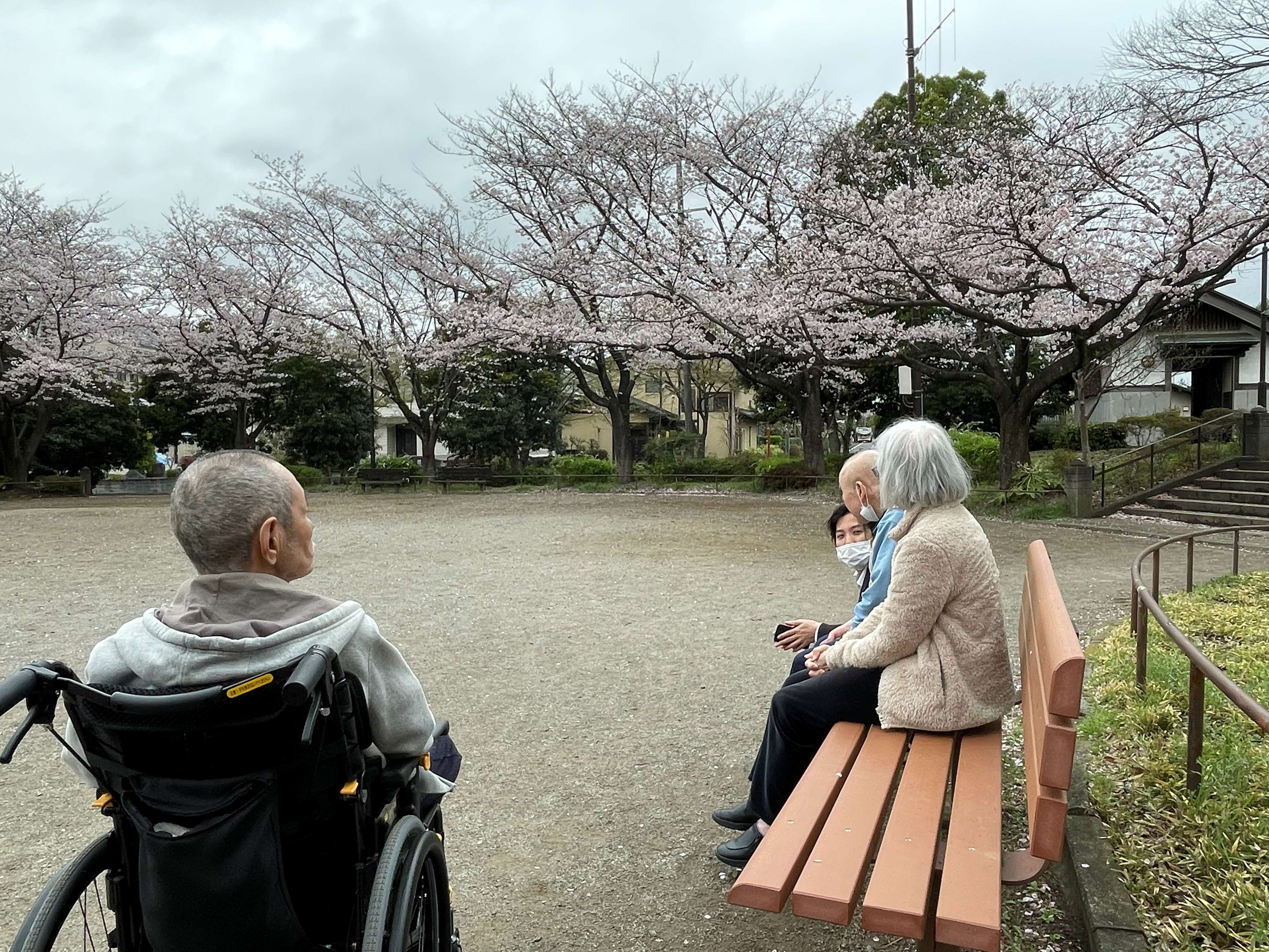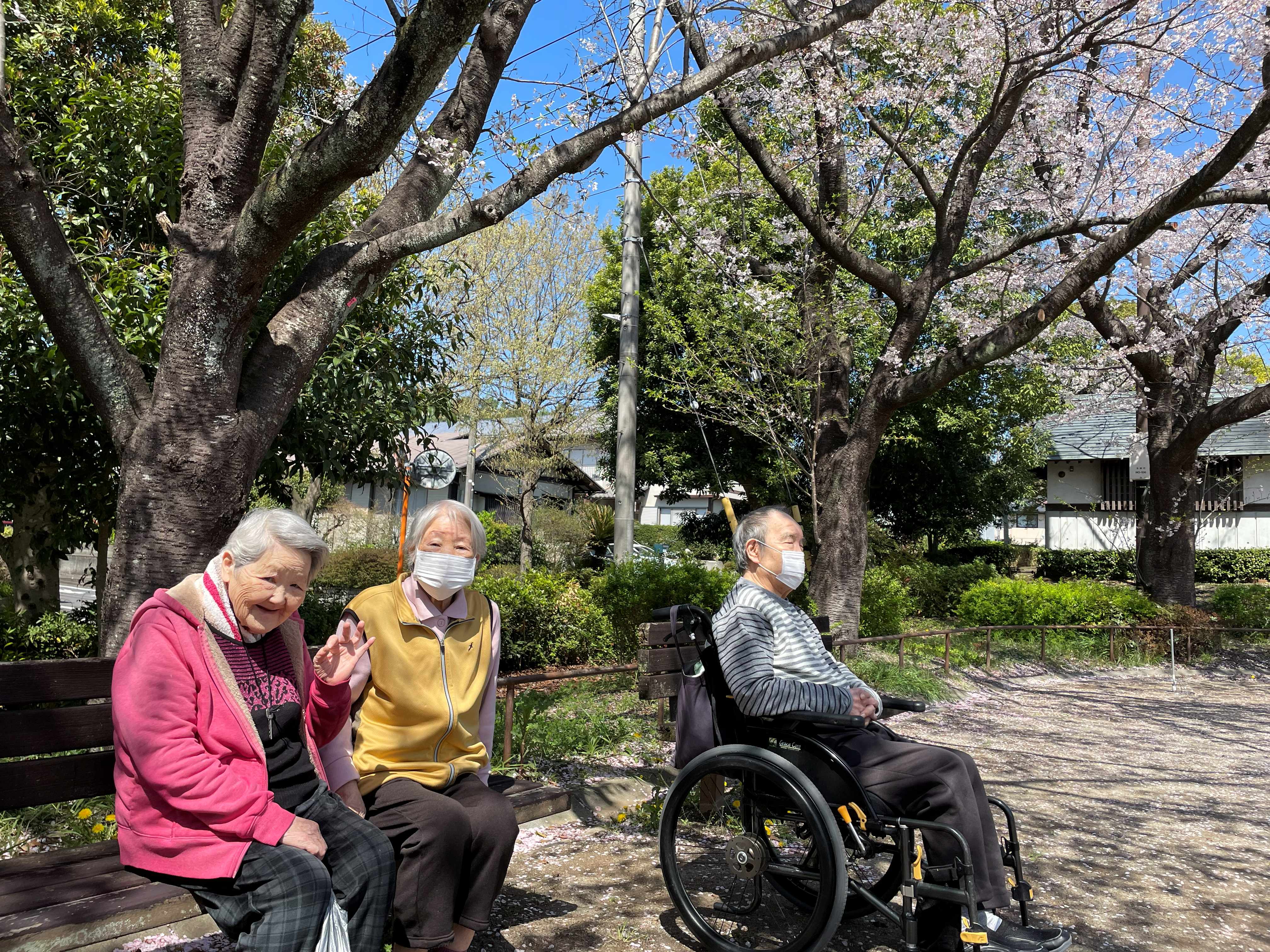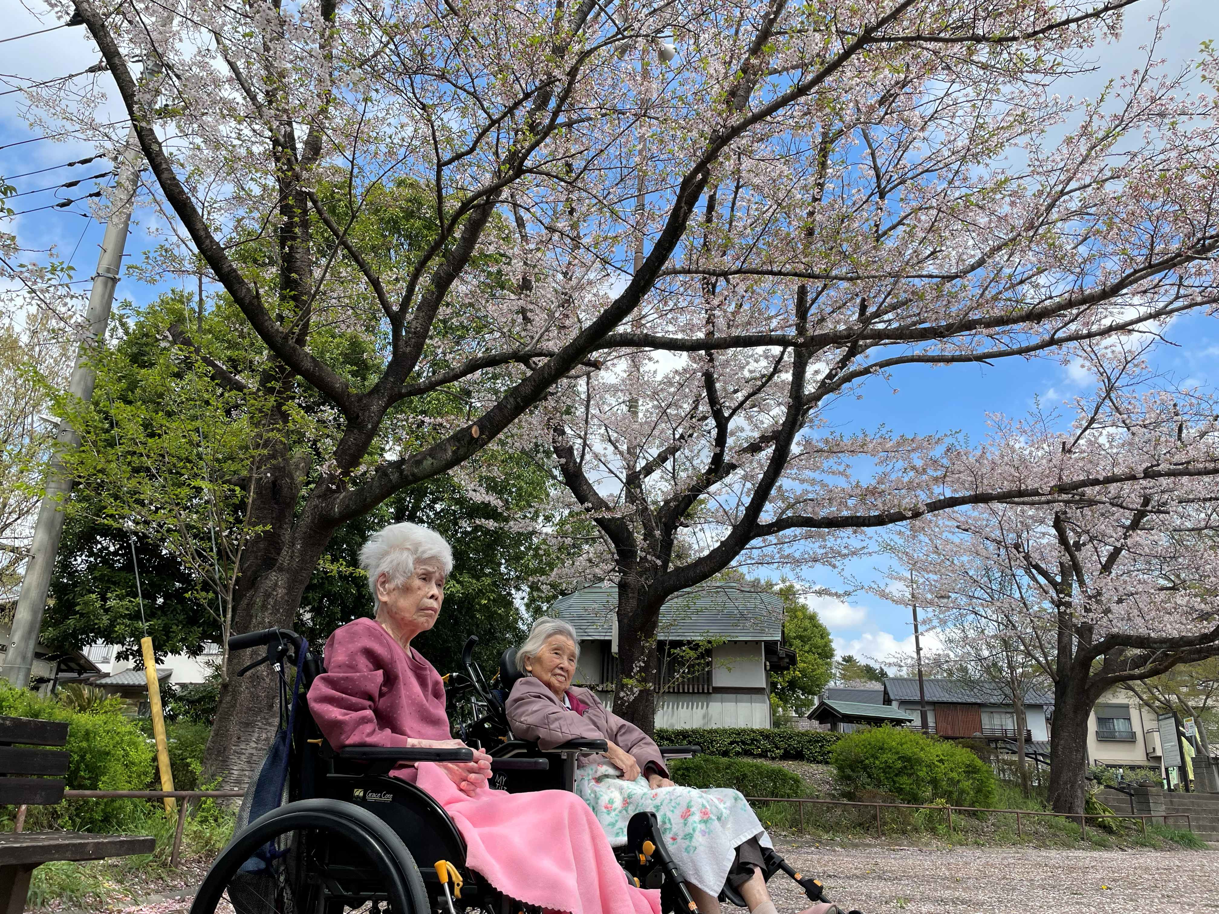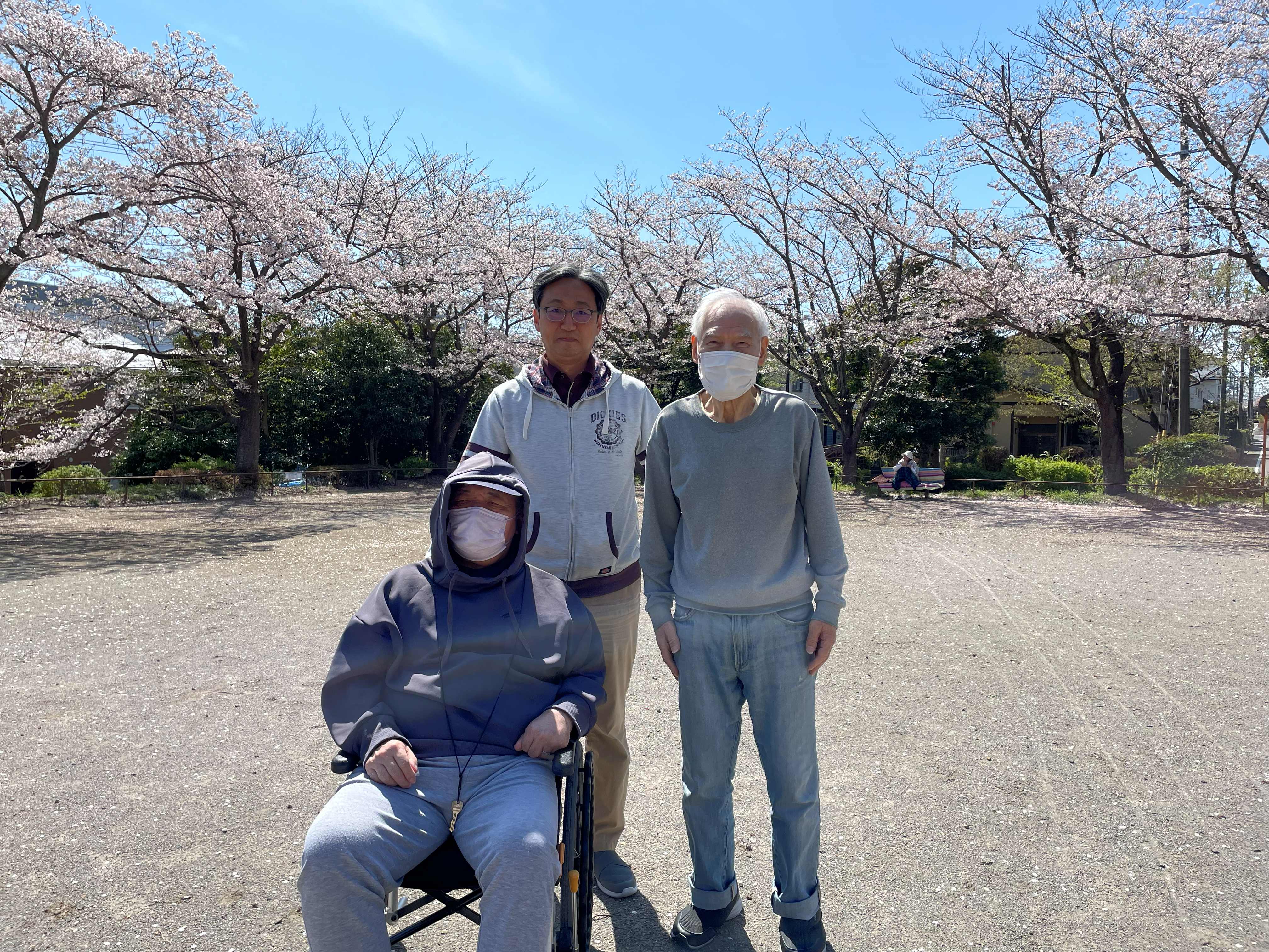 桜満開の中、入居者様とのおしゃべりが弾みました♪