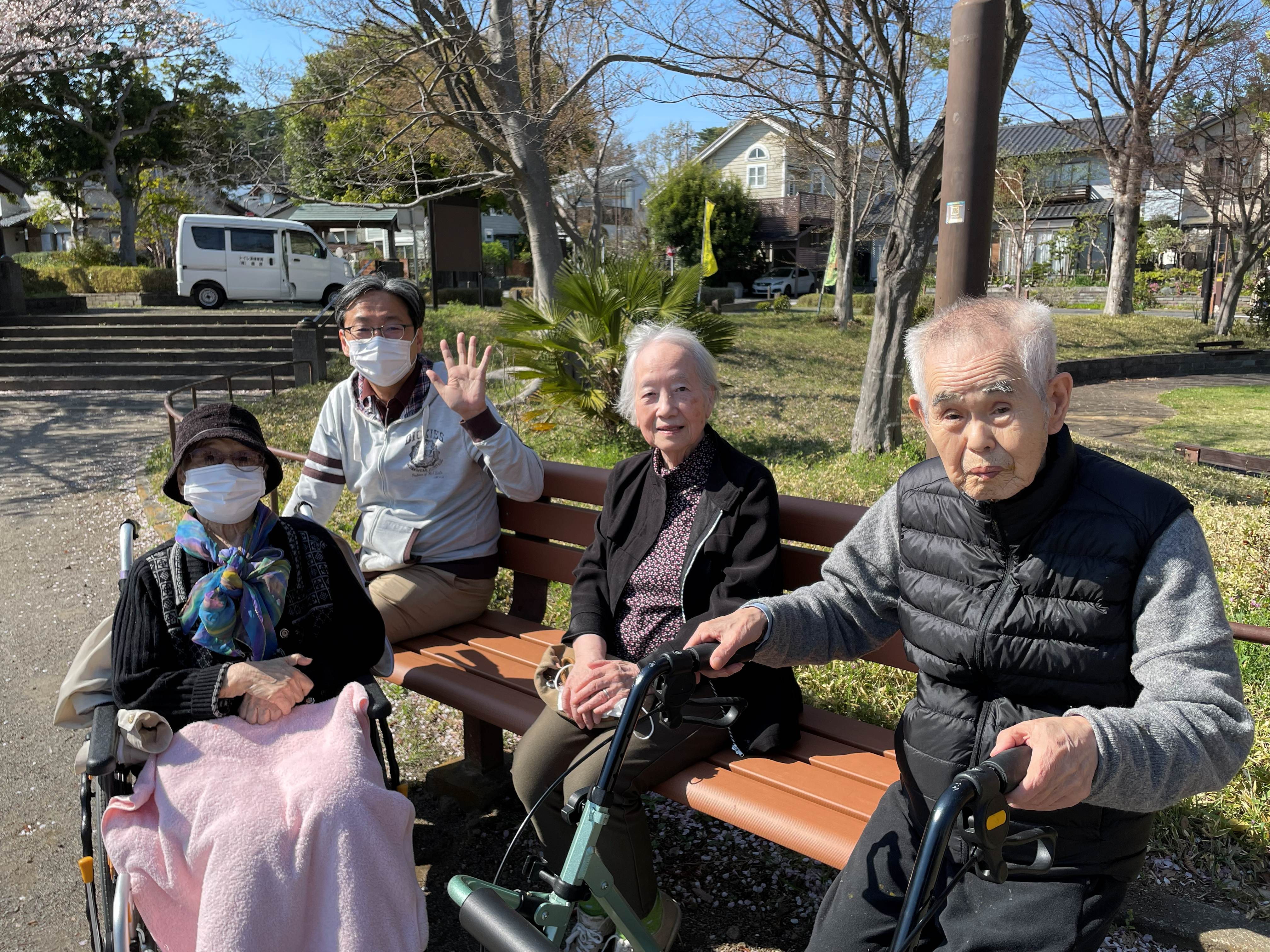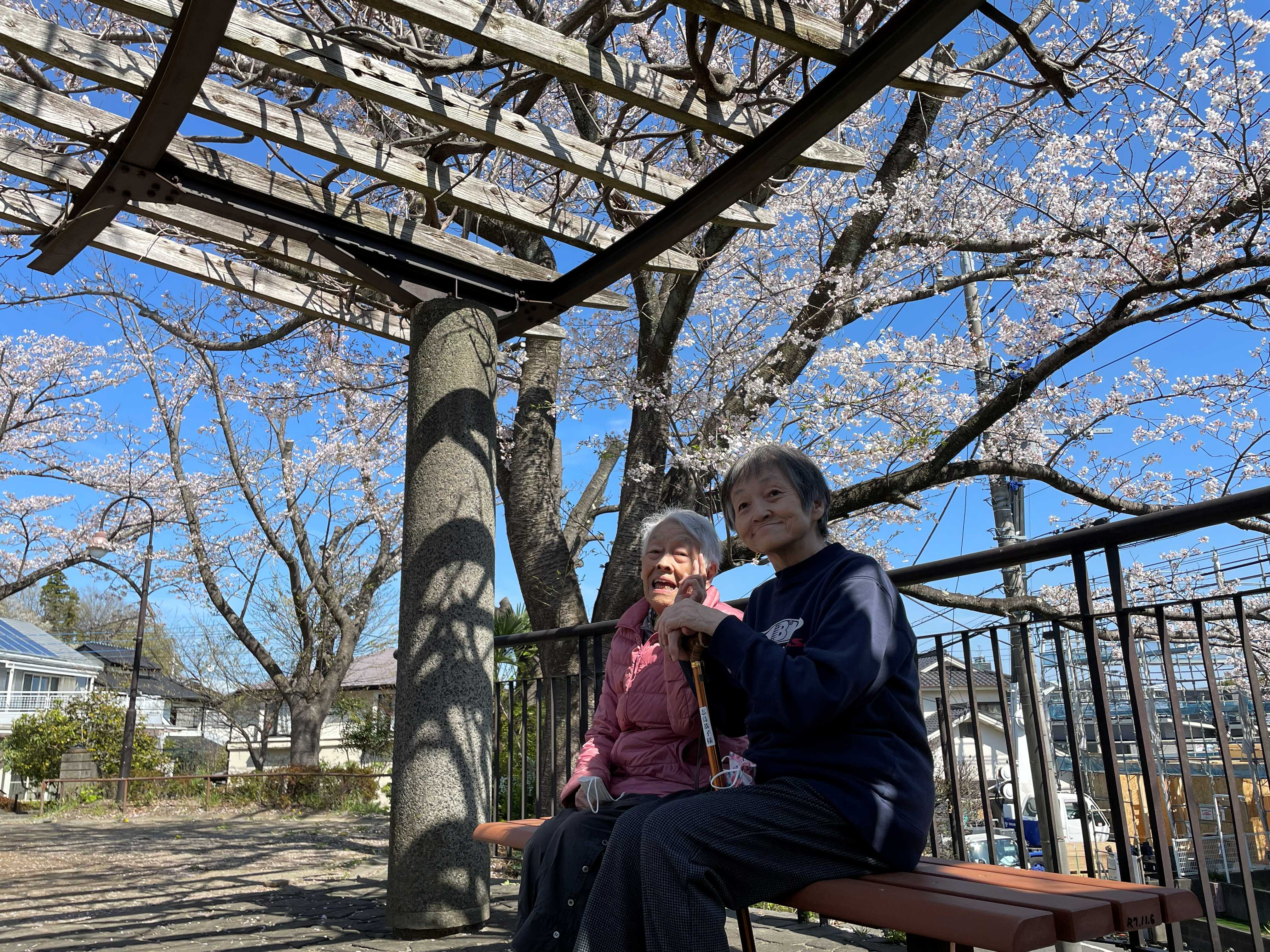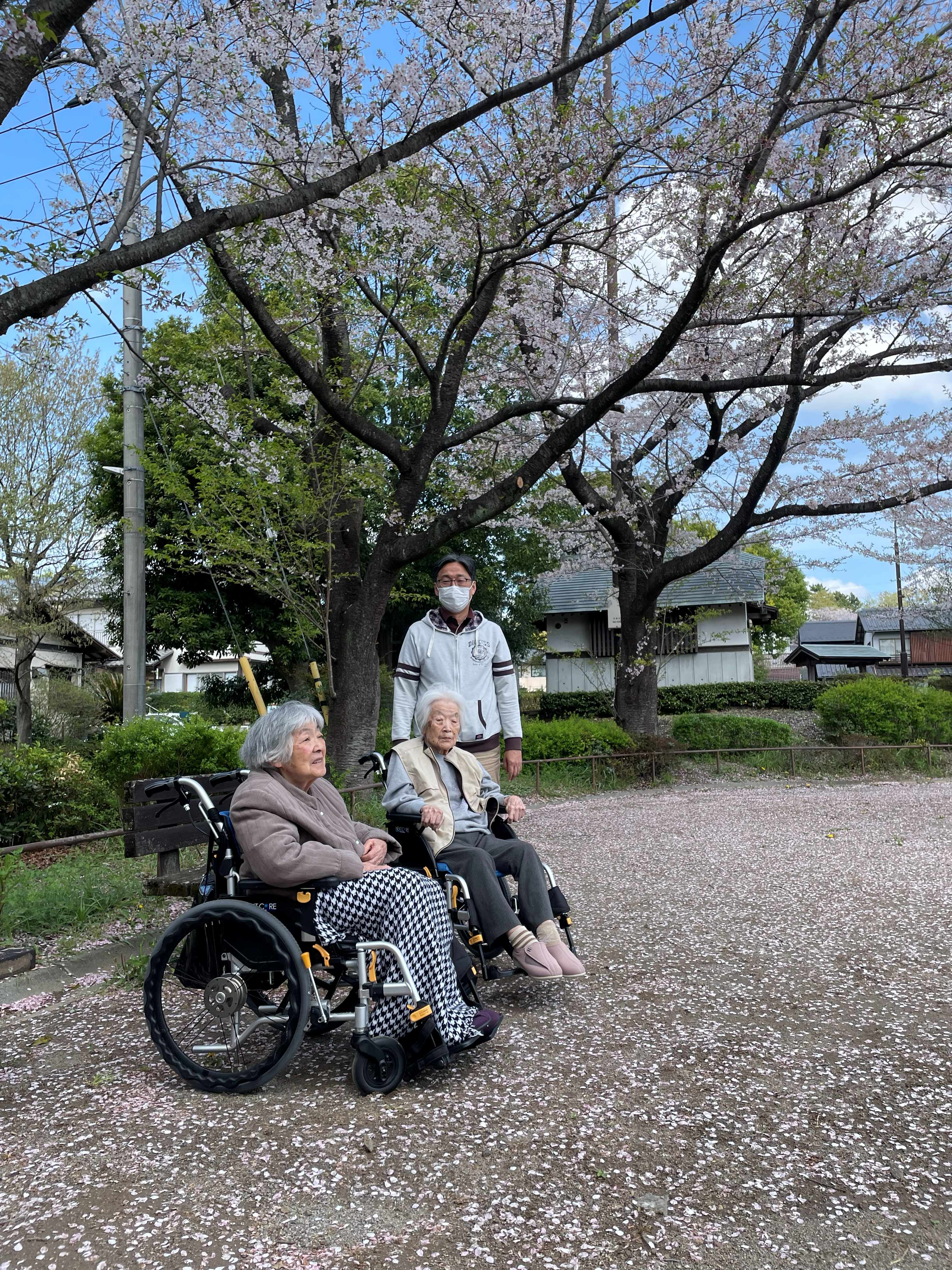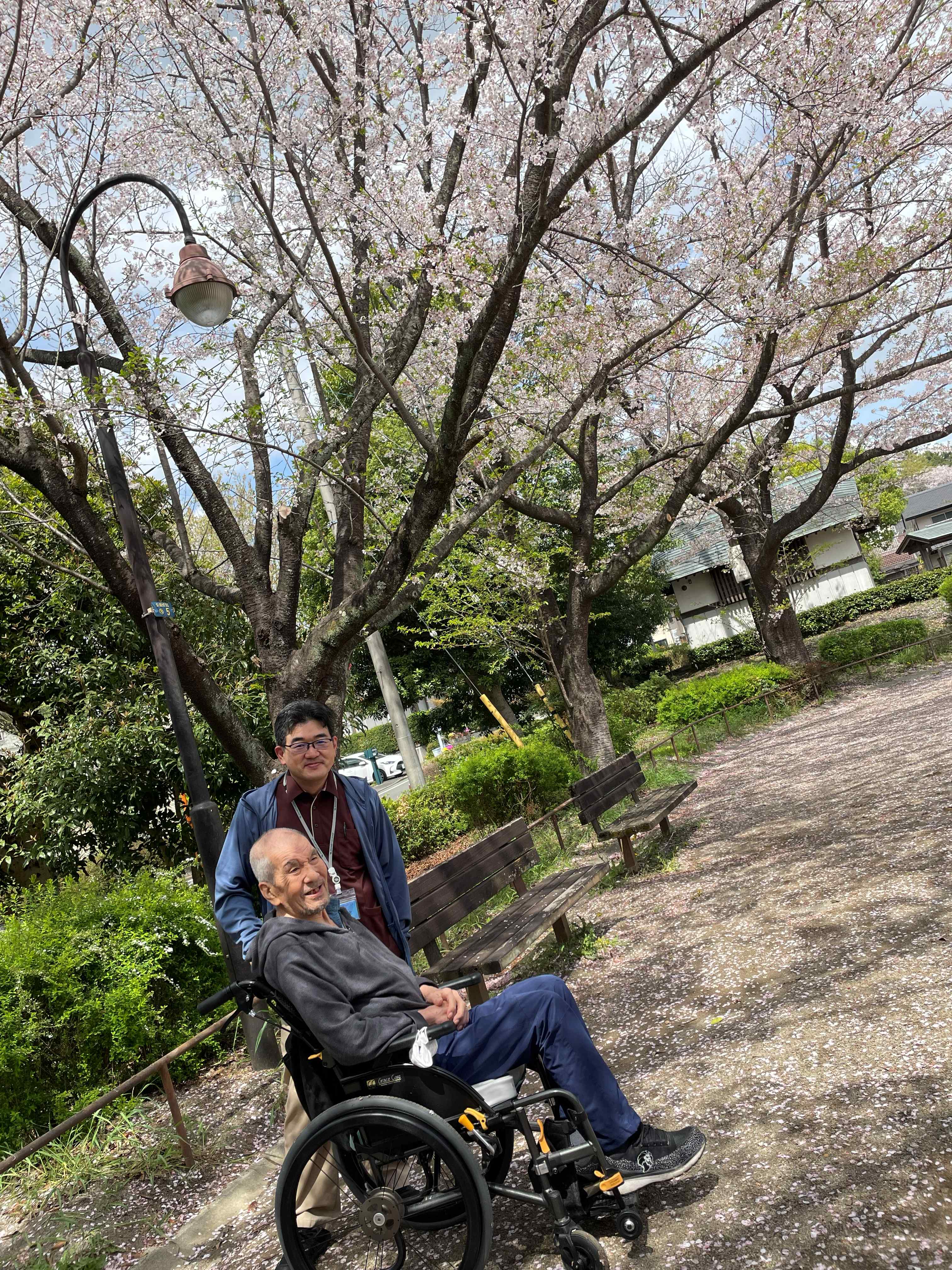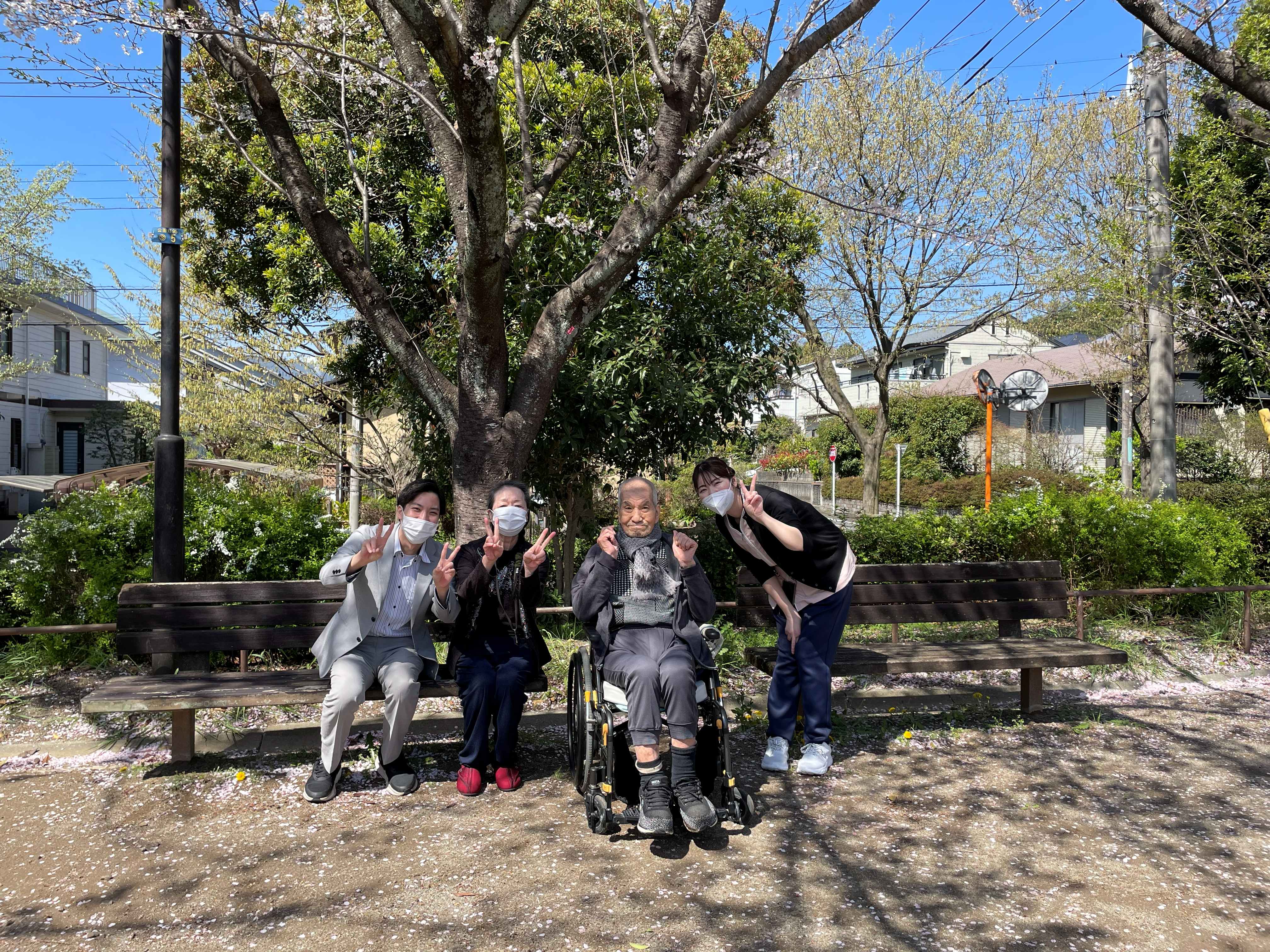桜満開の中、入居者様とのおしゃべりが弾みました♪