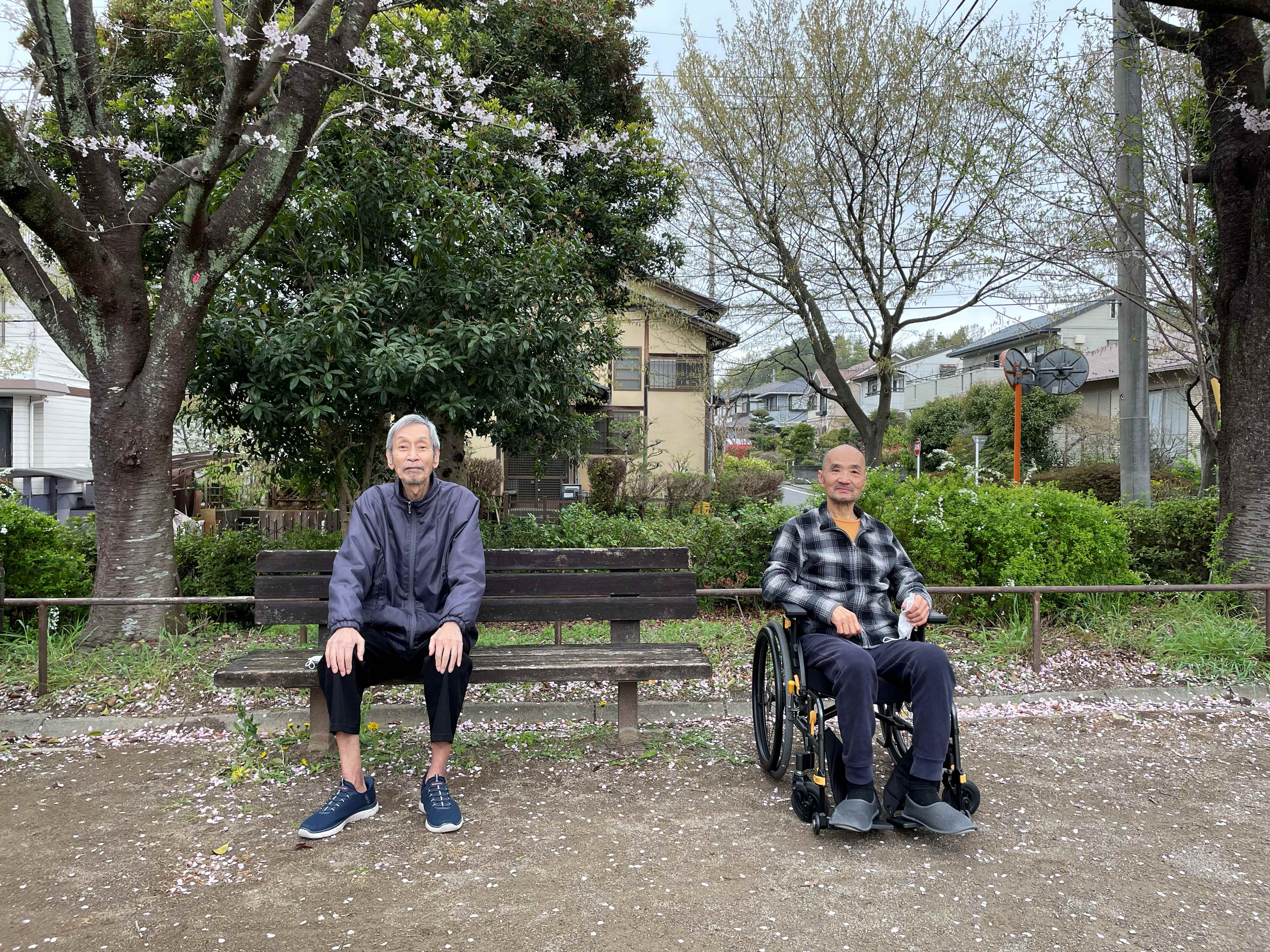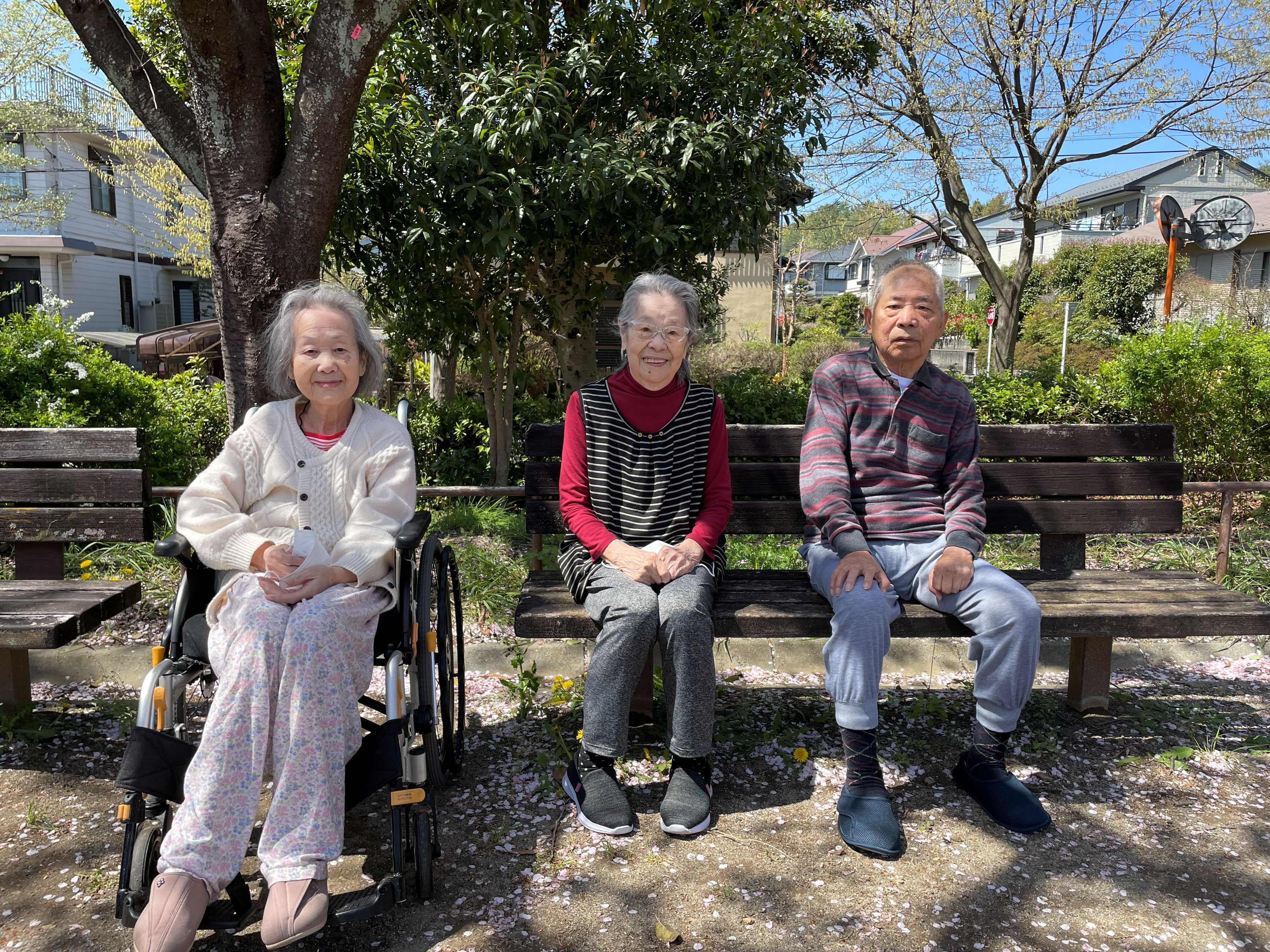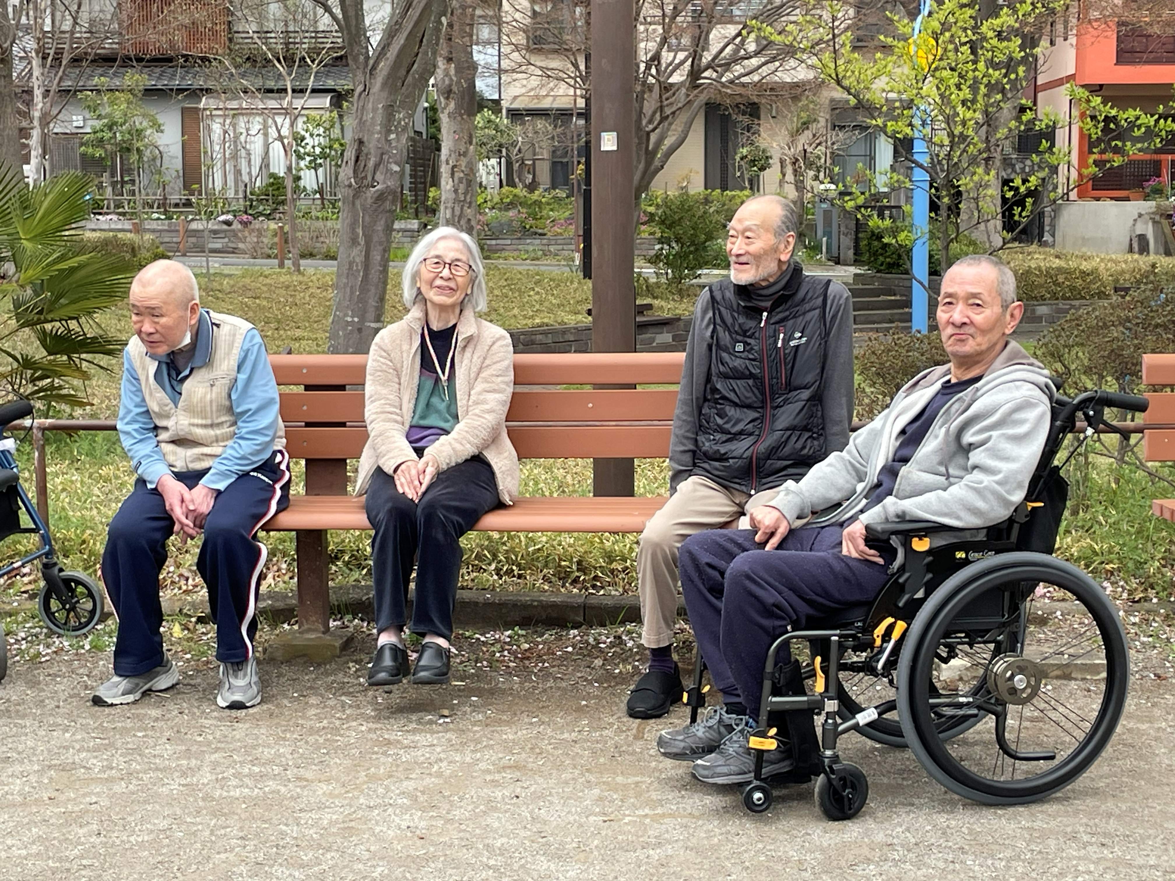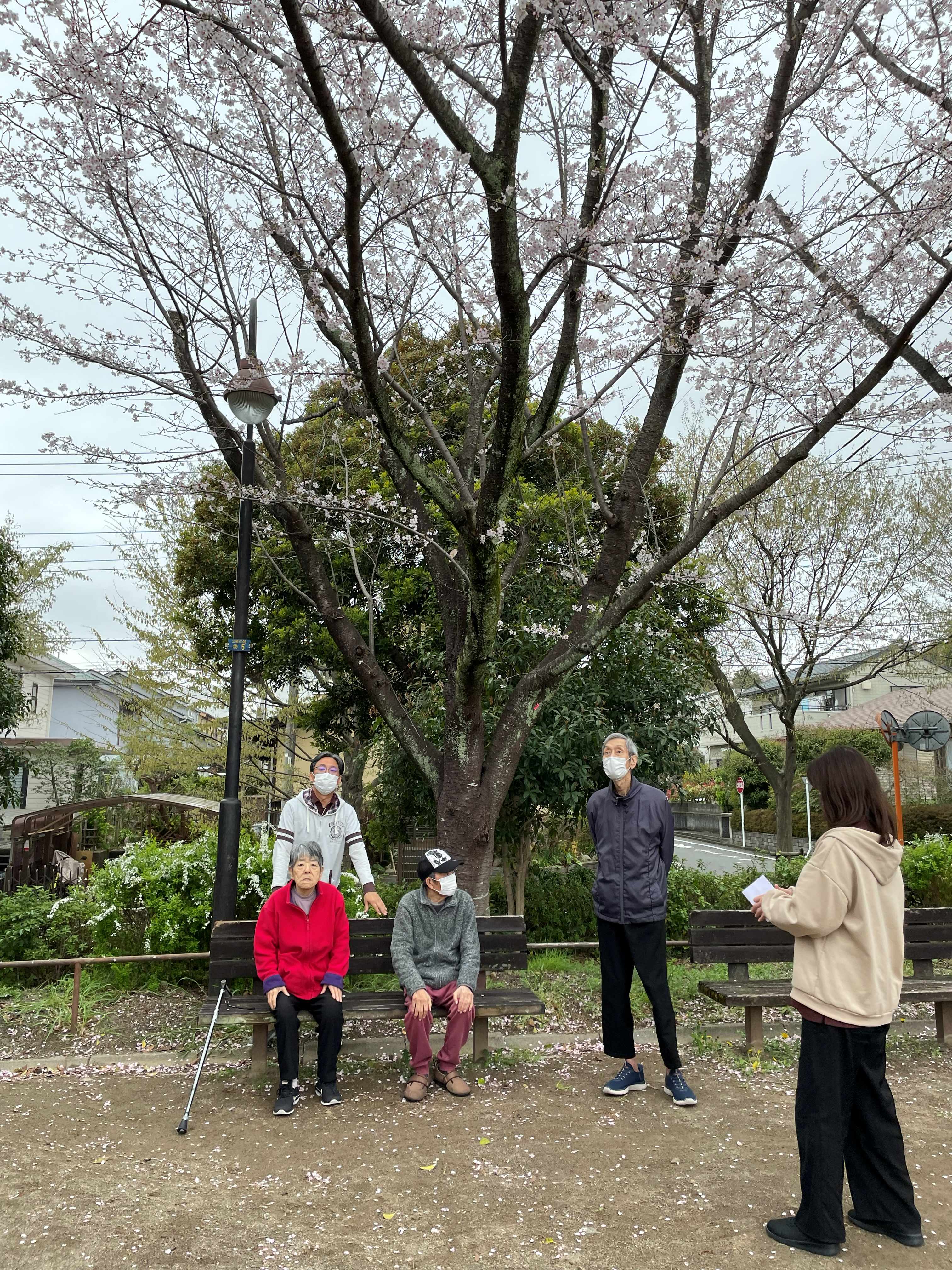 桜満開の中、入居者様とのおしゃべりが弾みました♪