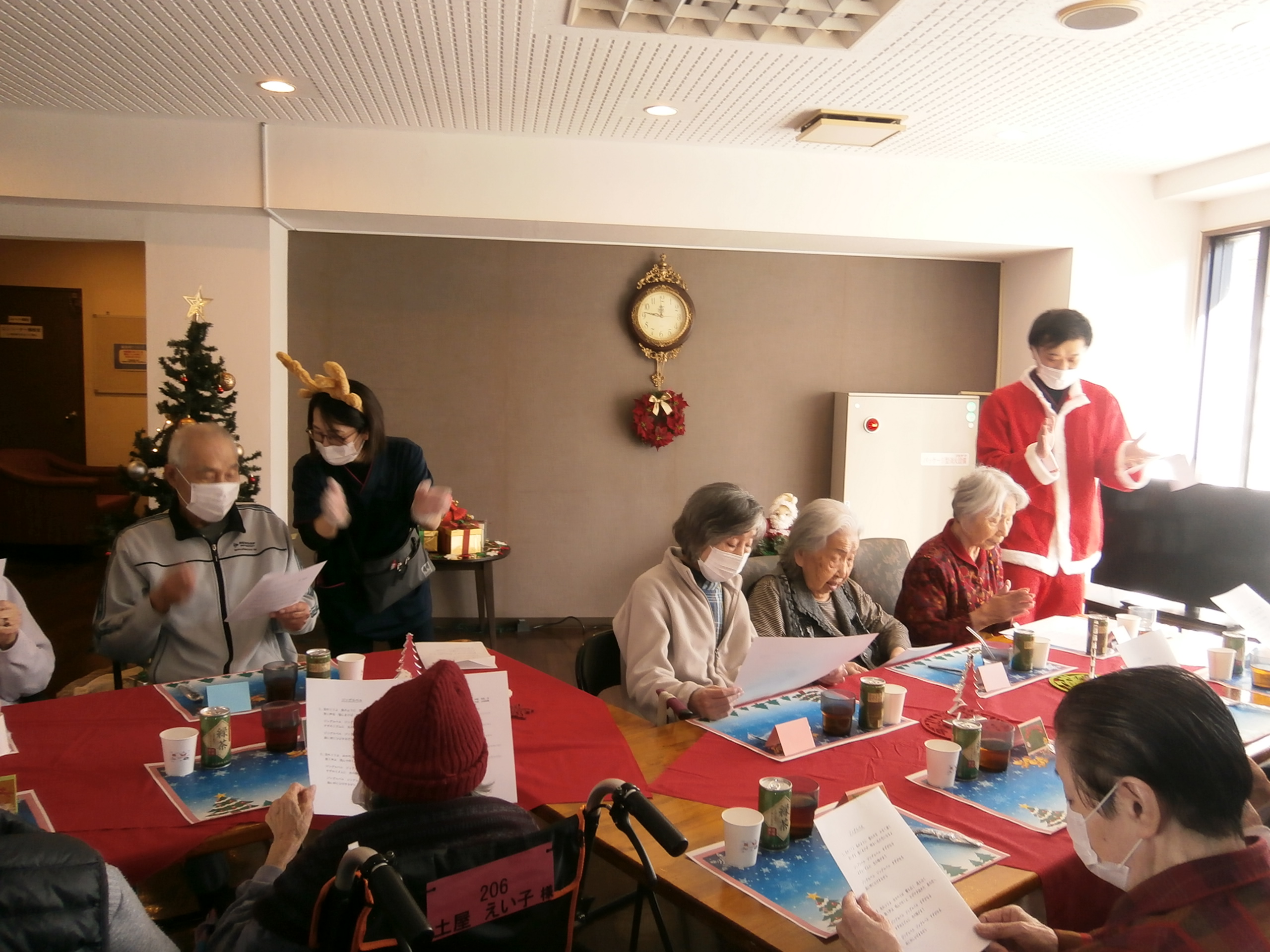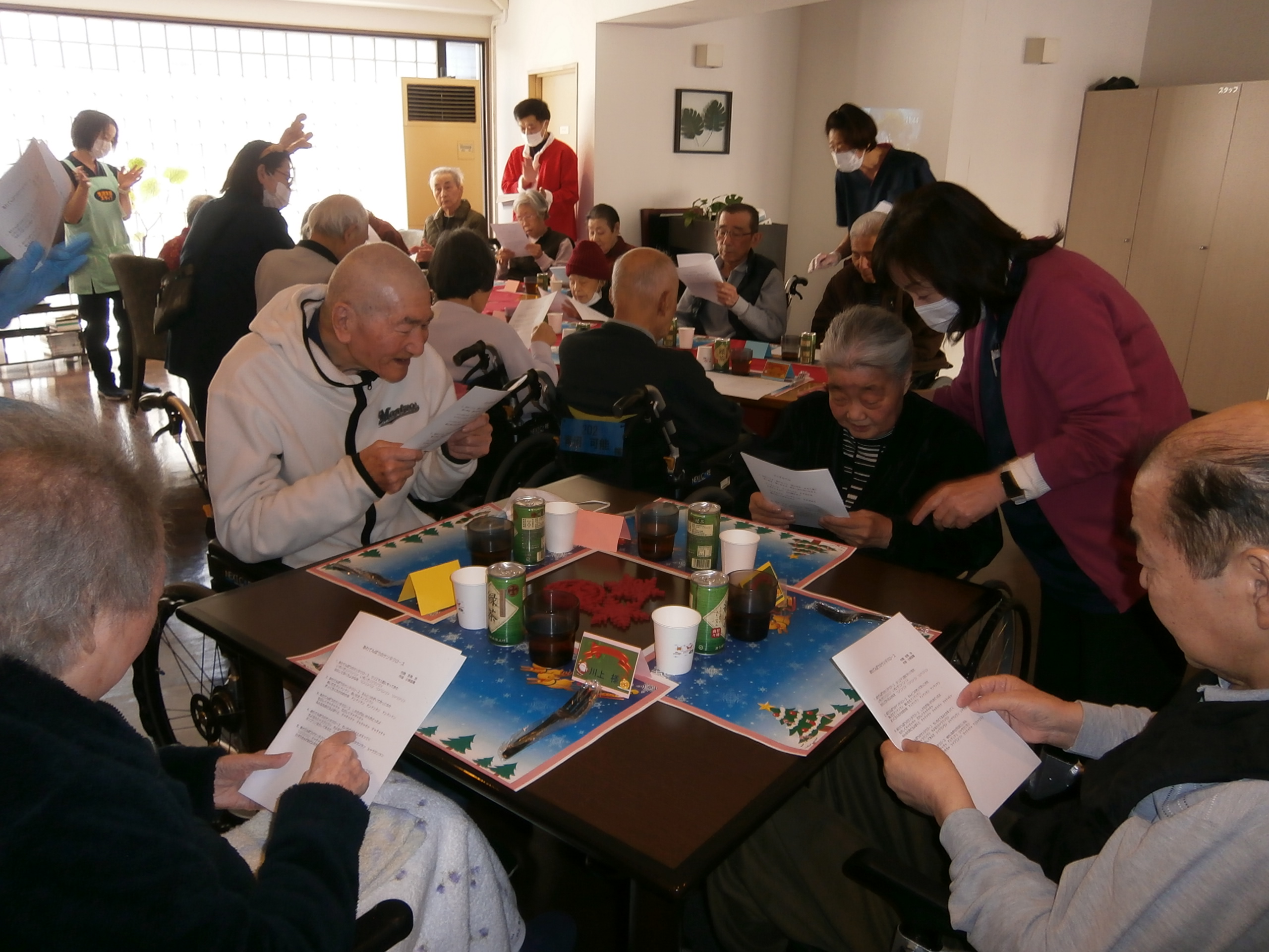 握りたての新鮮なお寿司を召し上がっていただきながら、ご家族様・ケアマネさん・スタッフと音楽を