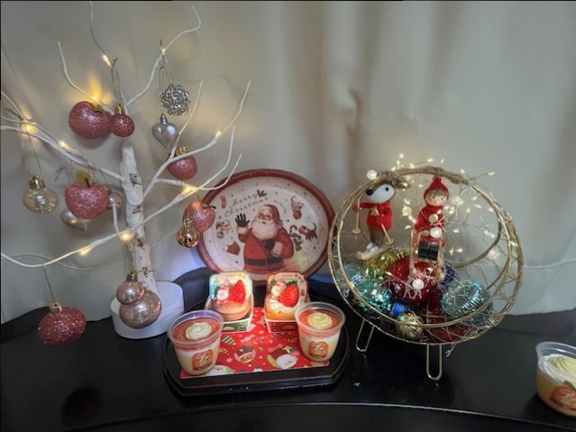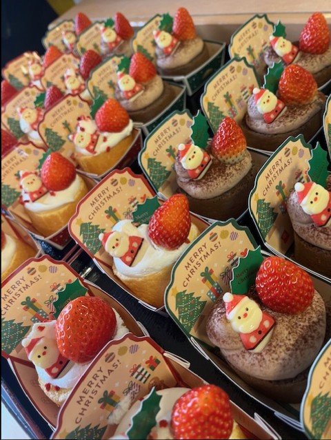 今年は、可愛いサンタさんが乗ったいちごのケーキをご用意いたしました。チョコとバニラの2種類です。