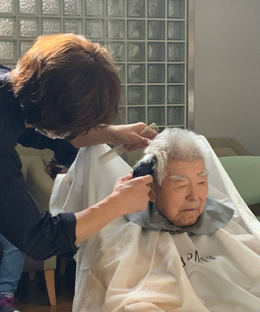 入居者さん一人ひとりに丁寧に声をかけながら、髪を整えてくださり、